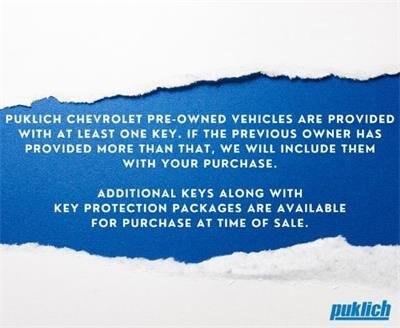 We are Western North Dakota's largest Chevrolet dealer. At Puklich Chevrolet in Bismarck, it truly is about tradition, values and family ties. Since 1983 when Stan Puklich went into business, our employees have proudly carried on his principles of what it takes to be successful. Most importantly, it s treating our customers with the respect they deserve. Puklich Chevrolet is a Pre-Discount Dealer . Meaning, we pre-discount all our inventory up front to give you a great deal without the hassle. We do look at all the books like KBB, JD Power, the actual auctions and also Carfax. But most importantly we look at current market conditions and what similar vehicles sold for in our market. We use all these tools to be competitively priced right up front, because the internet and all Third Party sites will tell you if we are a good to great deal. We live and breathe by being transparent! We want your trade and would love to buy any other vehicle you may have! Our Team will look at all the books and auctions. All that information is used while figuring out what reconditioning items your trade in may need to come up with a number that we will honor no matter what vehicle you are on. The best part about this is, even if you do not buy from us, the number we give you is a number we will write you a check for. Puklich Chevrolet pre-owned vehicles are provided with at lease one key. If the previous owner has provided more that that, we will include them with your purchase. Additional keys along with key protection packages are available for purchase at time of sale. Check out the other great features on this vehicle.